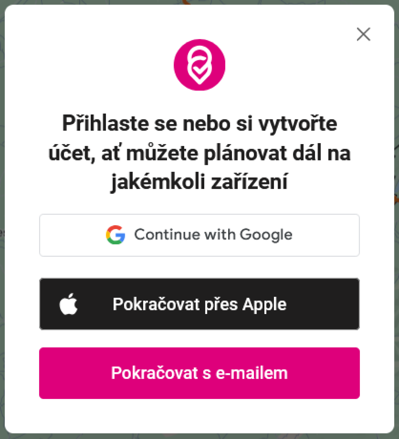 - Vyberte si přihlášení přes účet Google nebo Apple